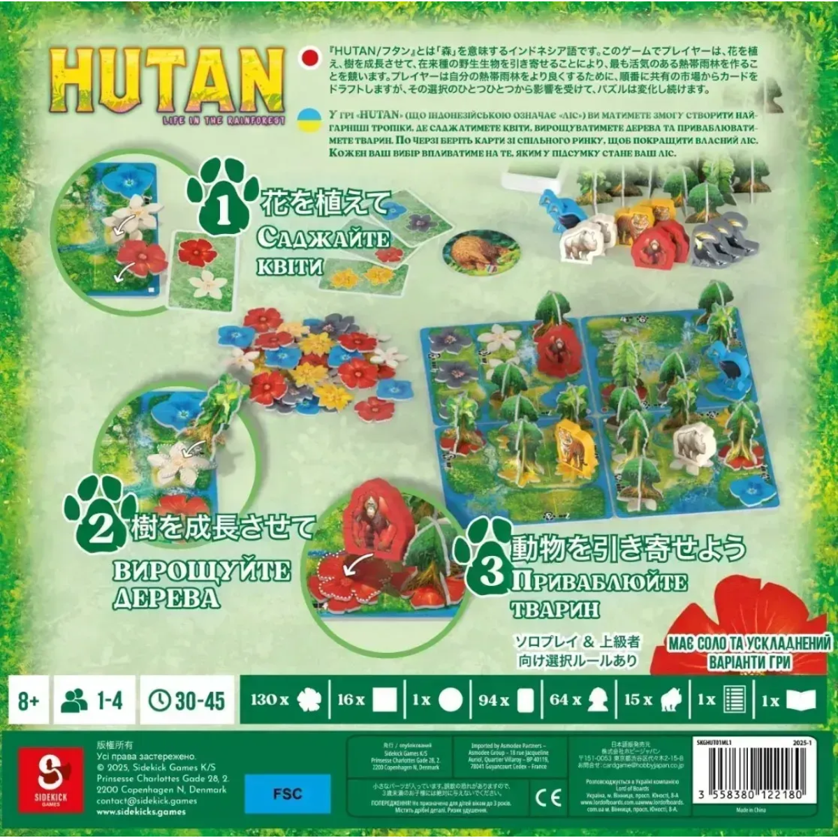 ???? Пориньте у чарівний світ джунглів та створіть свою власну, неповторну екосистему з настільною грою HUTAN: Життя в тропіках! Ця візуально захоплива гра з механікою викладання плиток запрошує вас стати архітектором буйного тропічного лісу, де кожен елемент має значення. Чи зможете ви створити ідеальні умови для процвітання дивовижних тварин та здобути перемогу, спостерігаючи за розквітом природи?