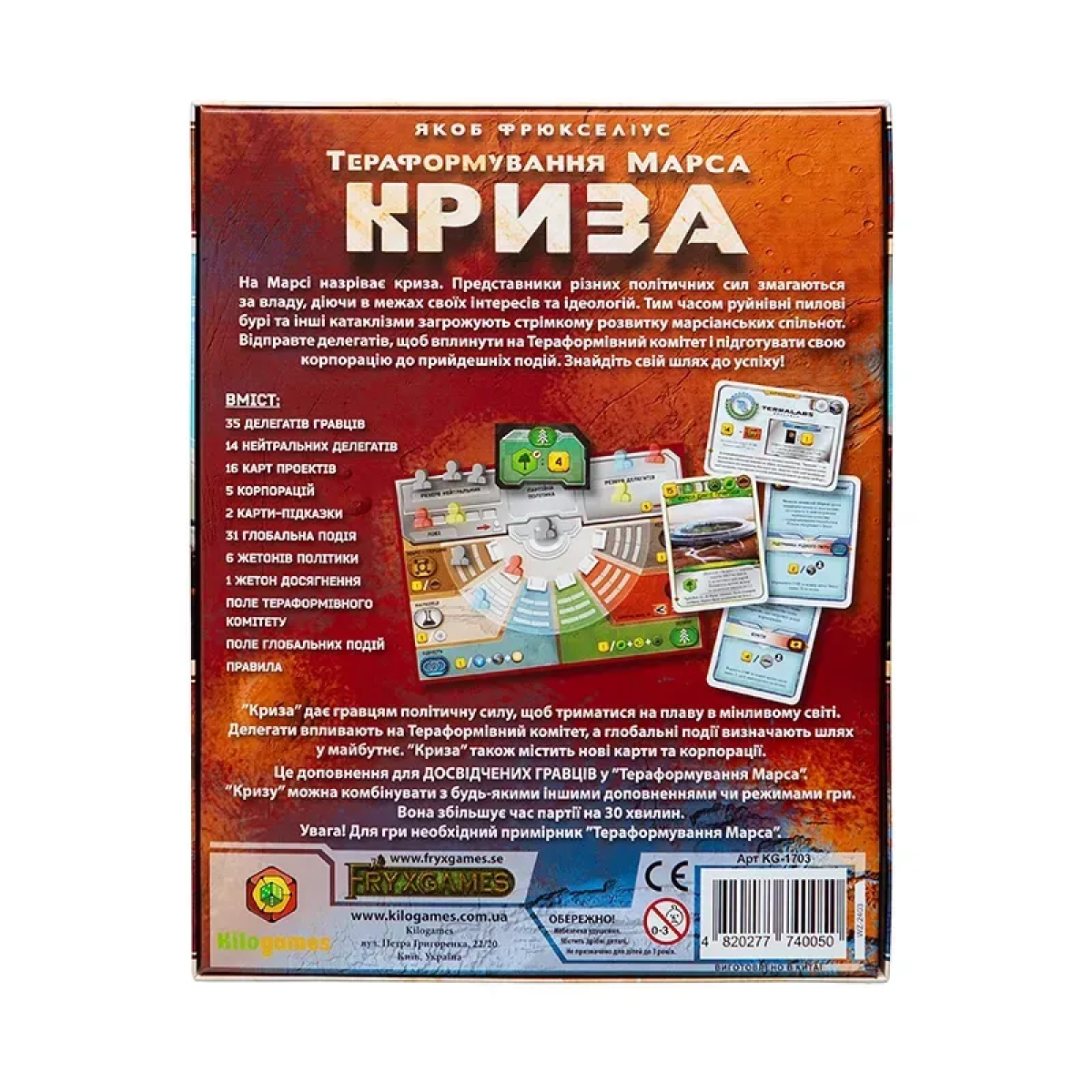 ???????????????? Для кого це доповнення? Для досвідчених гравців у «Тераформування Марса», які шукають максимальної глибини та складності. «Криза» суттєво збільшує час партії та рівень взаємодії між гравцями. Це ідеальний вибір для тих, хто хоче перетворити гру на повноцінну цивілізаційну епопею.
