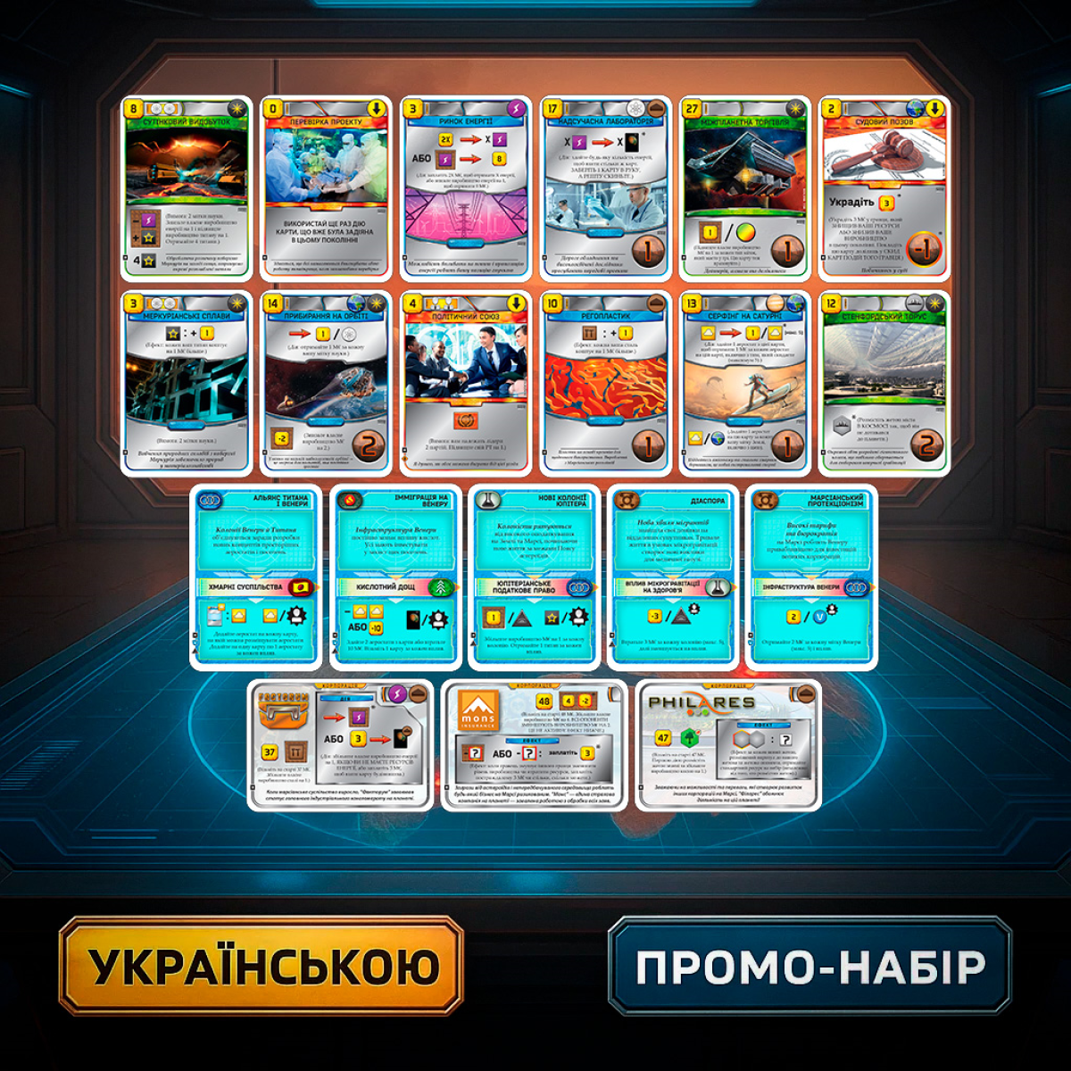 УВАГА, ЦЕ НАБІР ПРОМО-КАРТ! ДЛЯ ГРИ ПОТРІБНА БАЗОВА ВЕРСІЯ «ТЕРАФОРМУВАННЯ МАРСА» ТА ДОПОВНЕННЯ «КРИЗА».