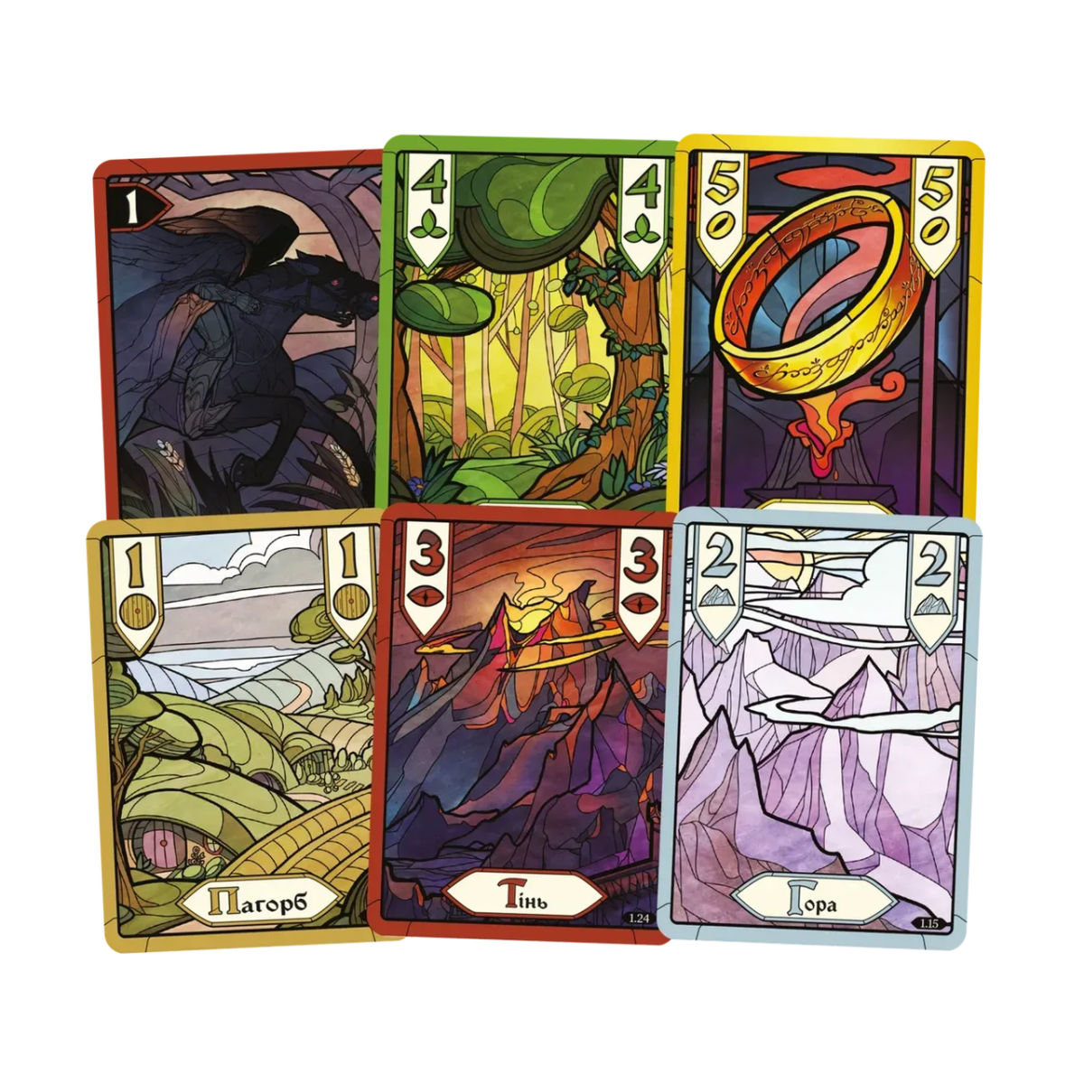 Атмосфера Середзем“я: Кожна карта ілюстрована артами зі всесвіту «Володаря Перснів», а ігрові механіки тісно переплетені з сюжетом книги.