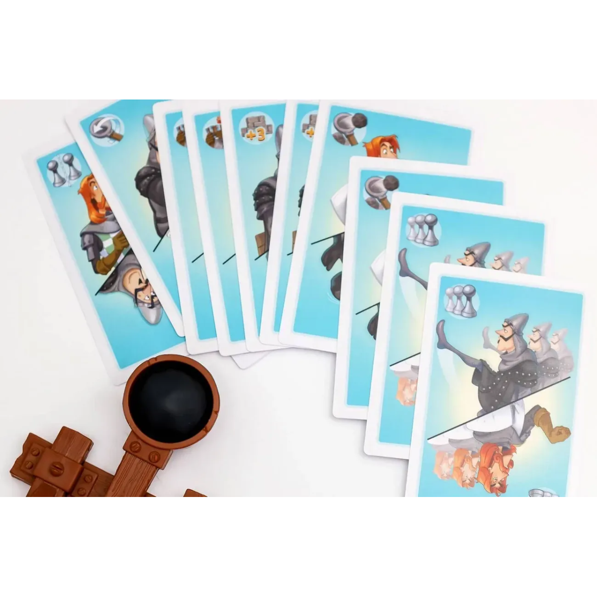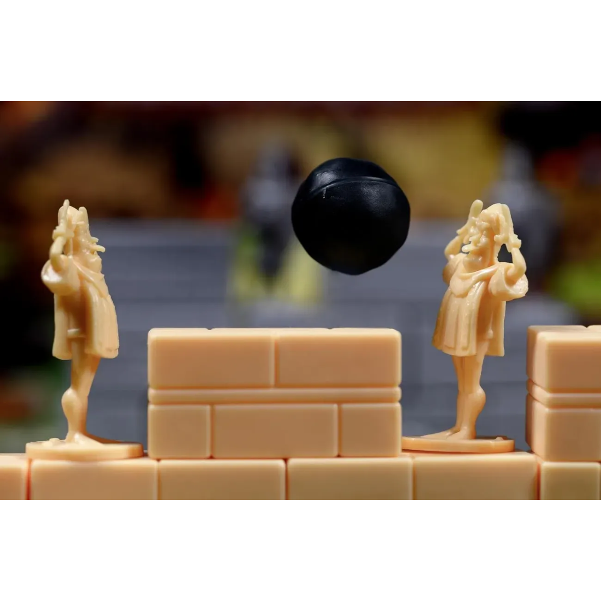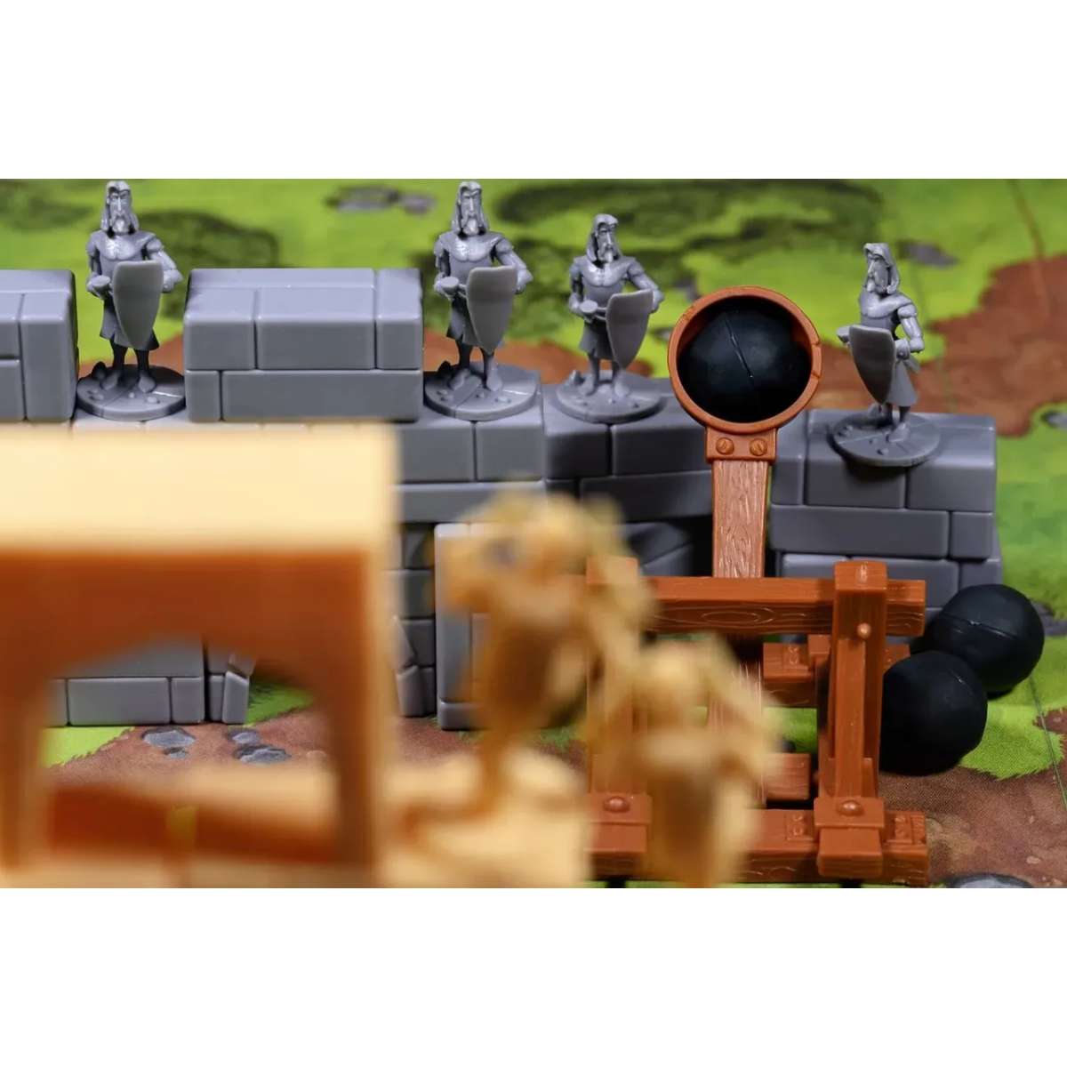 Гра ділиться на дві фази: спочатку ви, використовуючи спеціальні цеглинки, будуєте на своєму полі замок будь-якої конфігурації. Проявіть інженерну кмітливість, щоб зробити його якомога міцнішим! А потім починається найвеселіше: по черзі ви стріляєте зі своїх катапульт гумовими валунами, намагаючись збити всіх лицарів супротивника та зруйнувати його твердиню.