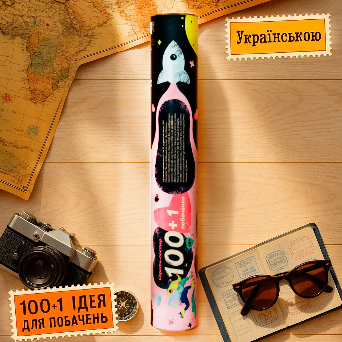 Стильний подарунок “все включено“: Постер упакований в красивий подарунковий тубус і укомплектований усім необхідним, включаючи скретчер для стирання.