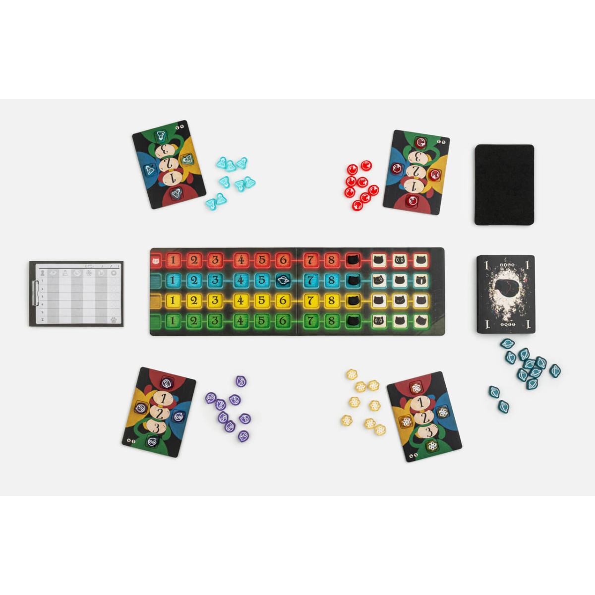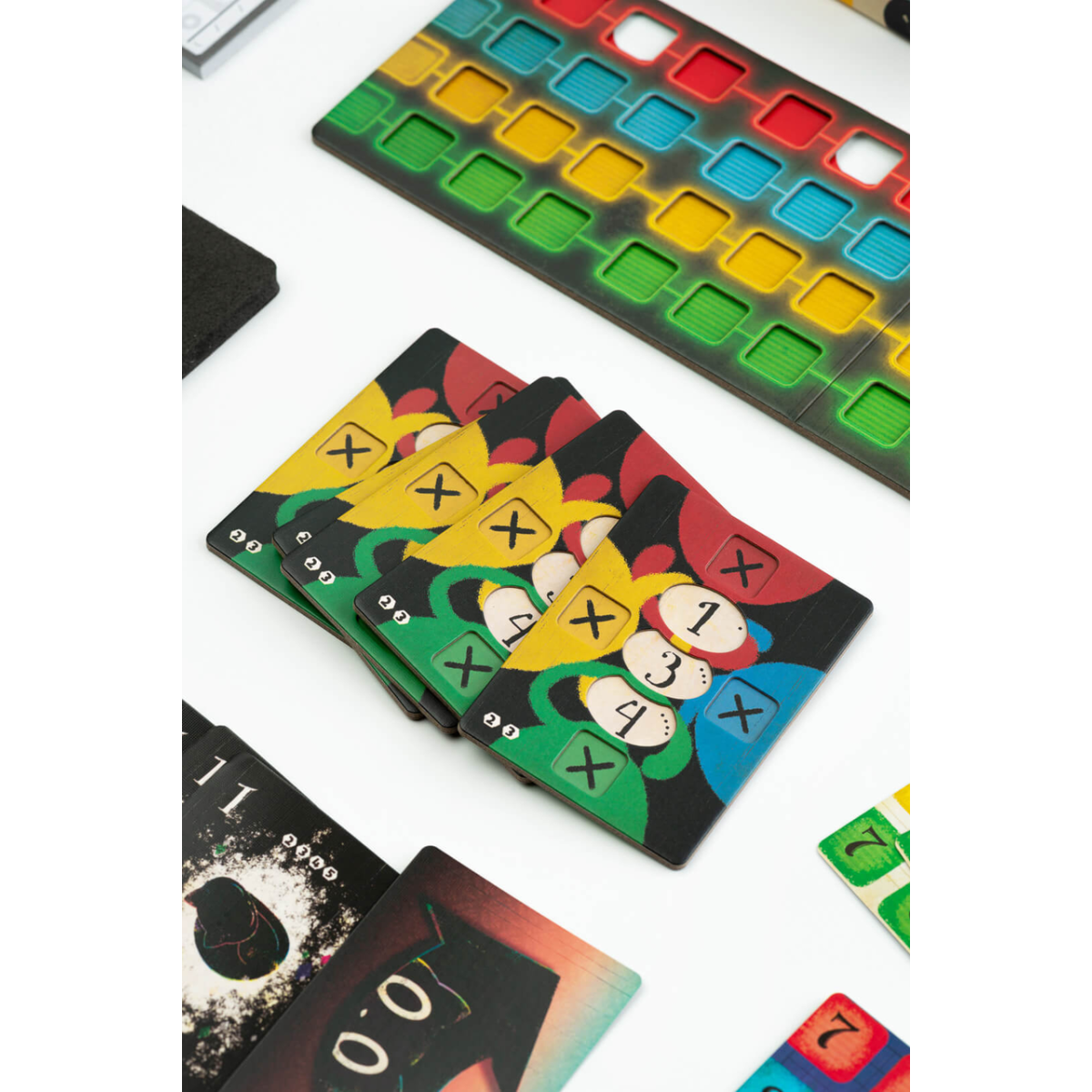 Кожне ваше рішення одразу відмічається на спільному полі, і ось тут починається найцікавіше: ви не можете заявити карту того кольору та номіналу, якого у вас “не може бути“ згідно з вашими попередніми ходами. Якщо ви заганяєте себе в глухий кут і не можете зробити хід – ви створюєте парадокс і втрачаєте очки!