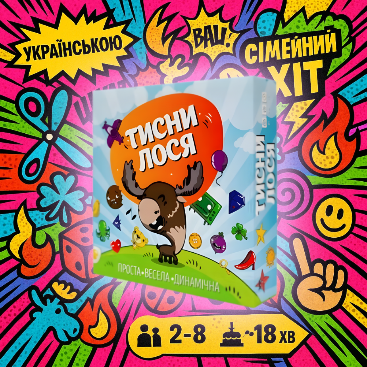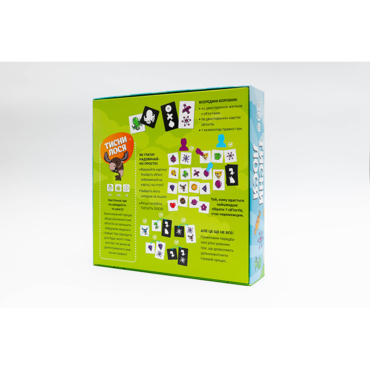 ???? Перевірте свою уважність і доведіть, що ви найшвидший! “Тисни Лося!“ – це концентрат веселощів у маленькій коробочці, який ніколи не набридає.