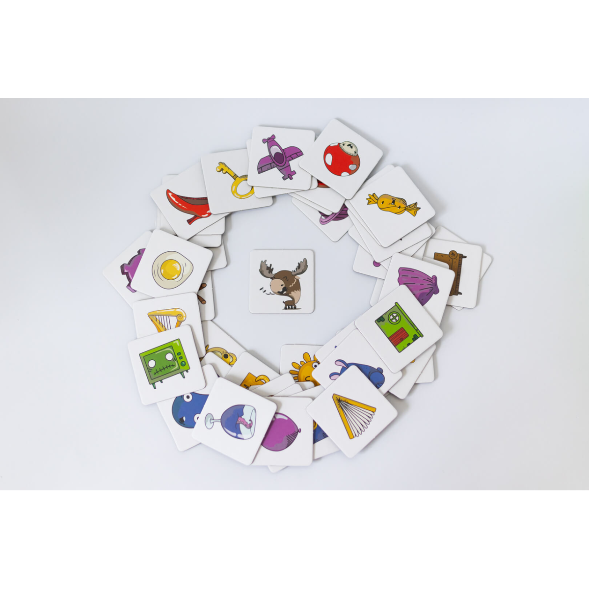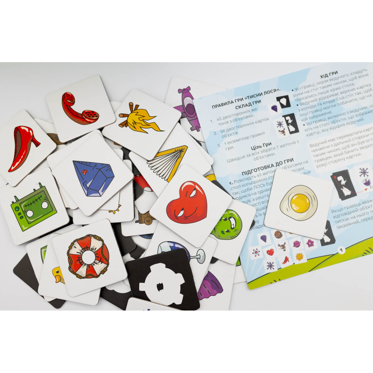 ???? Тисни Лося! – це українська адаптація всесвітньо відомого хіта “Dobble“ (“Spot It!“), вибухова гра на увагу та швидкість реакції, що підкорила мільйони сердець по всьому світу. Правила геніально прості: на будь-яких двох круглих картках завжди є лише одне зображення, що збігається. Ваше завдання – знайти його раніше за суперників і голосно вигукнути назву!