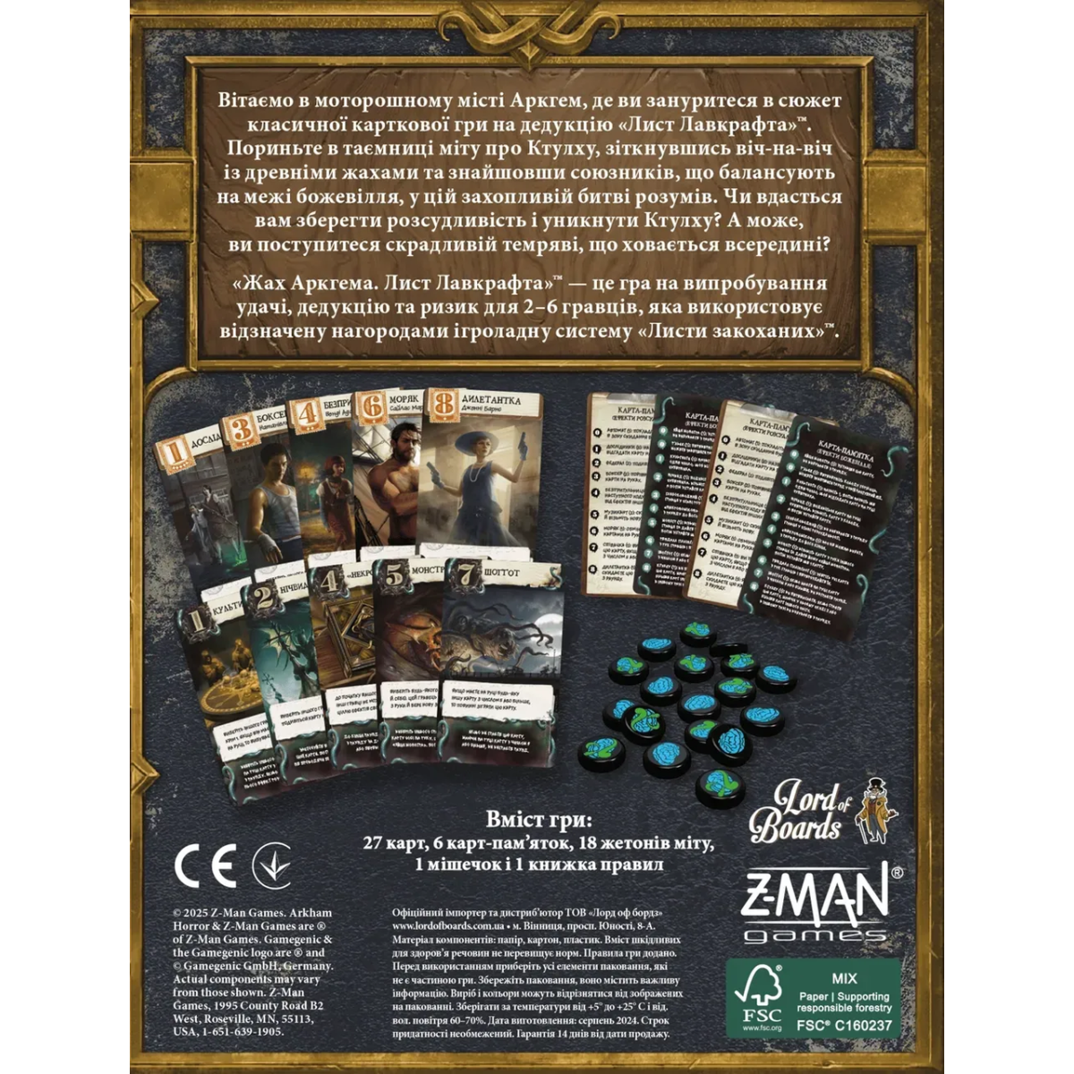 Настільна гра Жах Аркгема. Лист Лавкрафта / Lovecraft Letter ОРИГІНАЛЬНЕ ВИДАННЯ УКРАЇНСЬКОЮ МОВОЮ! ГРА НОВА ЗАПАКОВАНА!