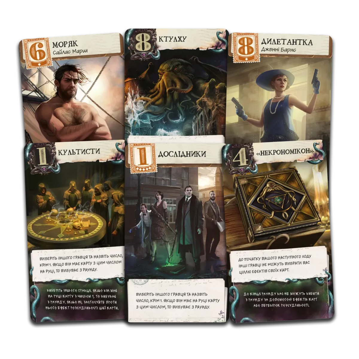 ???? Лист Лавкрафта – це швидка, азартна та неймовірно атмосферна карткова гра на дедукцію та удачу, заснована на механіках всесвітньо відомого хіта “Love Letter“, але перенесена в похмурий світ Жаху Аркгема. Чи зможете ви зберегти свій розум і доставити таємничого листа, або ж божевілля поглине вас першим?