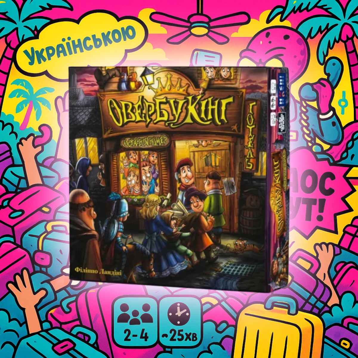 ???????????????? Для кого ця гра? Овербукінг – ідеальний вибір для тих, хто любить конфліктні та динамічні ігри з простими правилами. Вона чудово підійде для компанії друзів або для сімейного вечора, якщо ви не боїтеся трохи позмагатися та “поштовхатися ліктями“ за ігровим столом. Гра розвиває тактичне мислення та вміння швидко адаптуватися до мінливої ситуації.