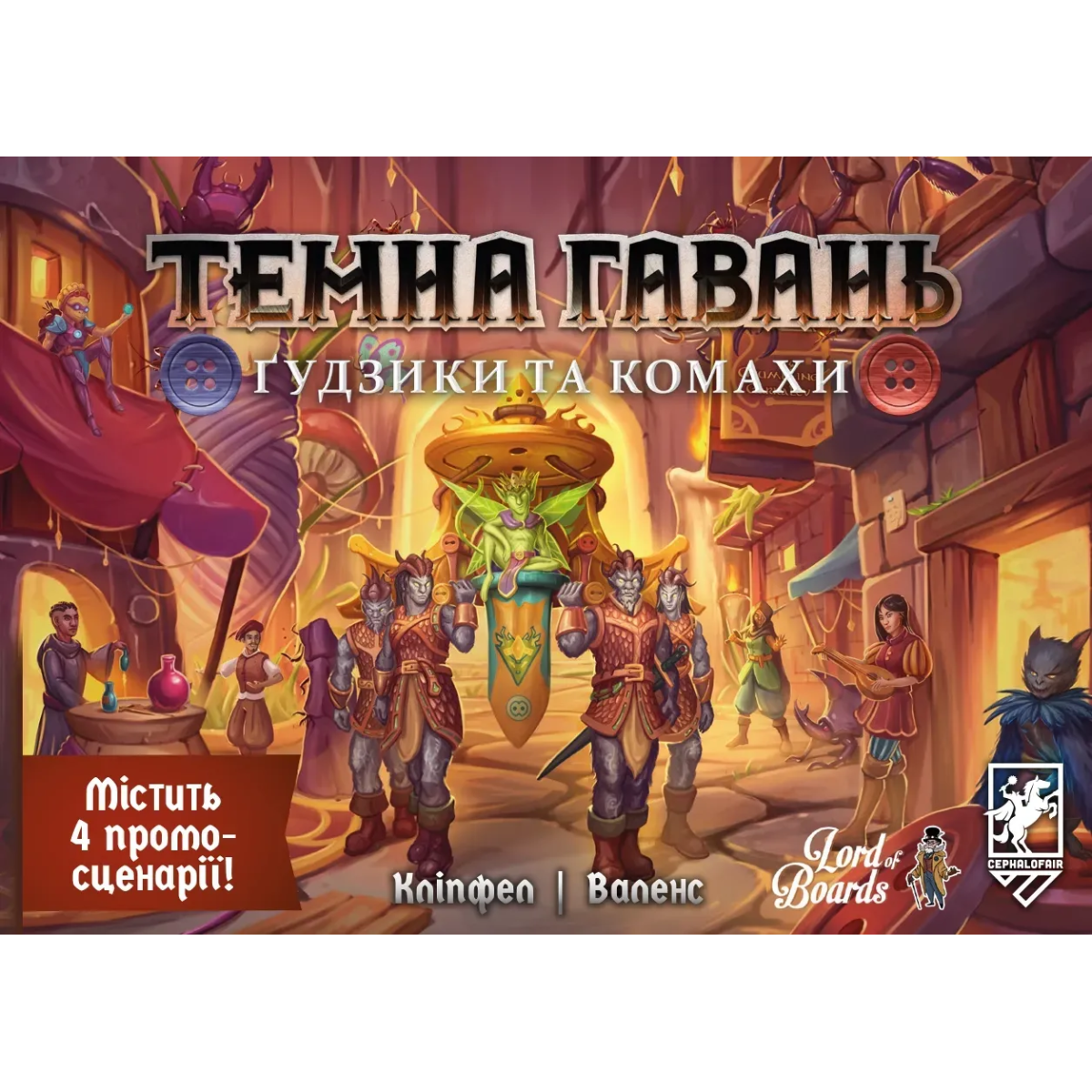 «Темна гавань. Ґудзики та комахи» — сольна пригода у всесвіті «Gloomhaven», яка перетворює знайомий ігровий процес у новому компактному форматі. Мініверсія отримала номінальну норму на премію Golden Geek 2024 як найкраща сольна гра.