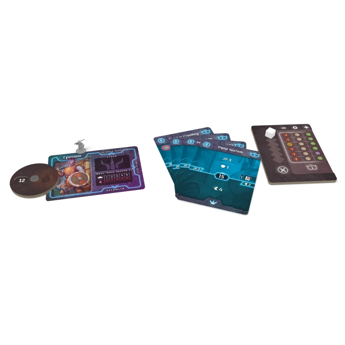 Монстри діють за результатами кидка білого кубика, а сила вашої атаки залежить від суми значення дії та модифікатора атаки. Упродовж пригоди можливості вашого персонажа будуть удосконалюватися.