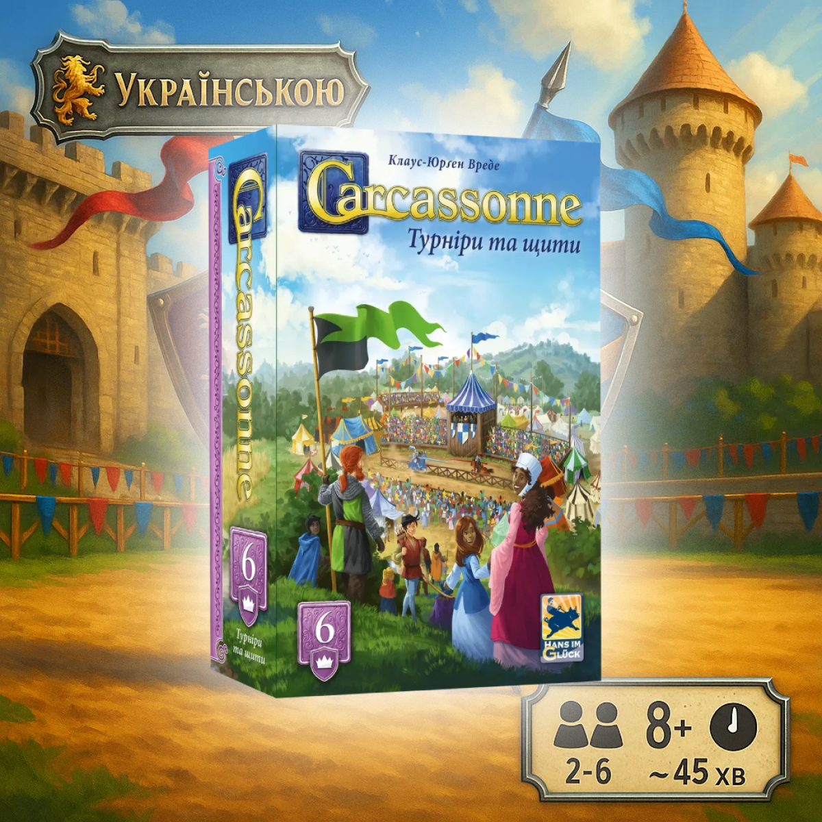 Новинка! Доповнення до настільної гри Каркасони: Турніри та щити / Carcassonne: Jousts and Crests / UKR